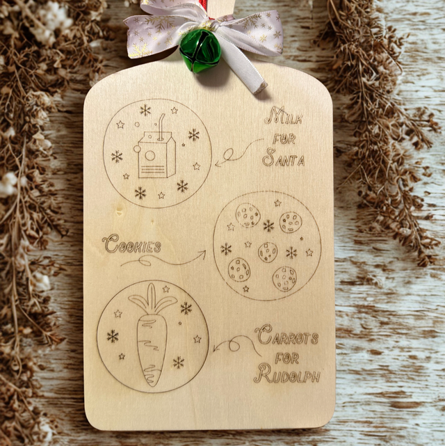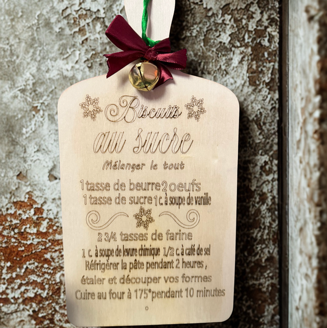 Une planche en bois décorative avec une recette écrite dessus