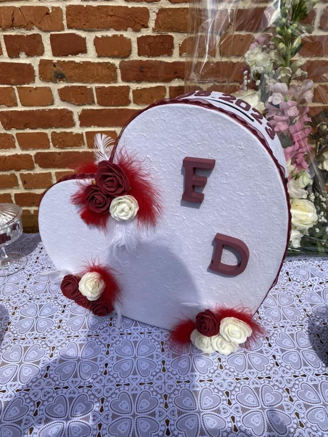 - **Noms des mariés** : Faites imprimer ou graver les noms des mariés et la date du mariage sur la boîte. Cela peut être fait avec des lettres en relief, des autocollants ou des impressions.